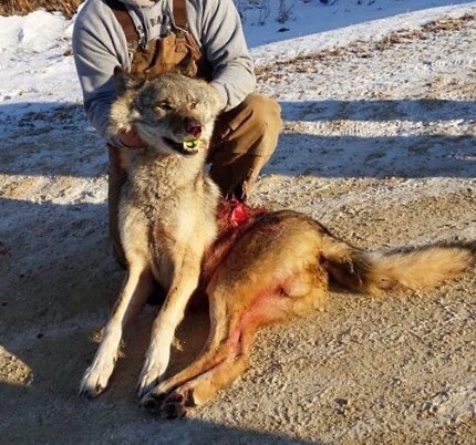 Photograph is of a young wolf killed by a hunter that used dogs in the Wisconsin wolf hunt 2014.